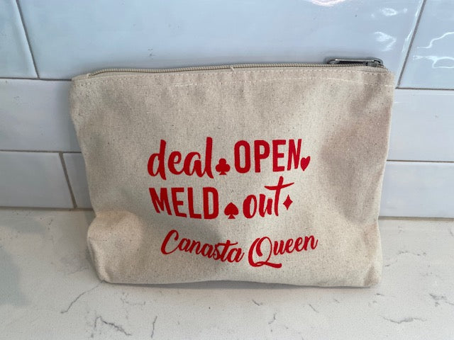 Canasta Themed 8 inch Flat Pouch Deal Open Meld Out