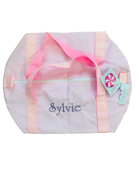 These OHMINT nylon duffles are  big enough for an overnight bag and it's even cuter with a monogram. Great for sleepovers, gym or ballet bags and more. Makes a perfect gift for a baby.